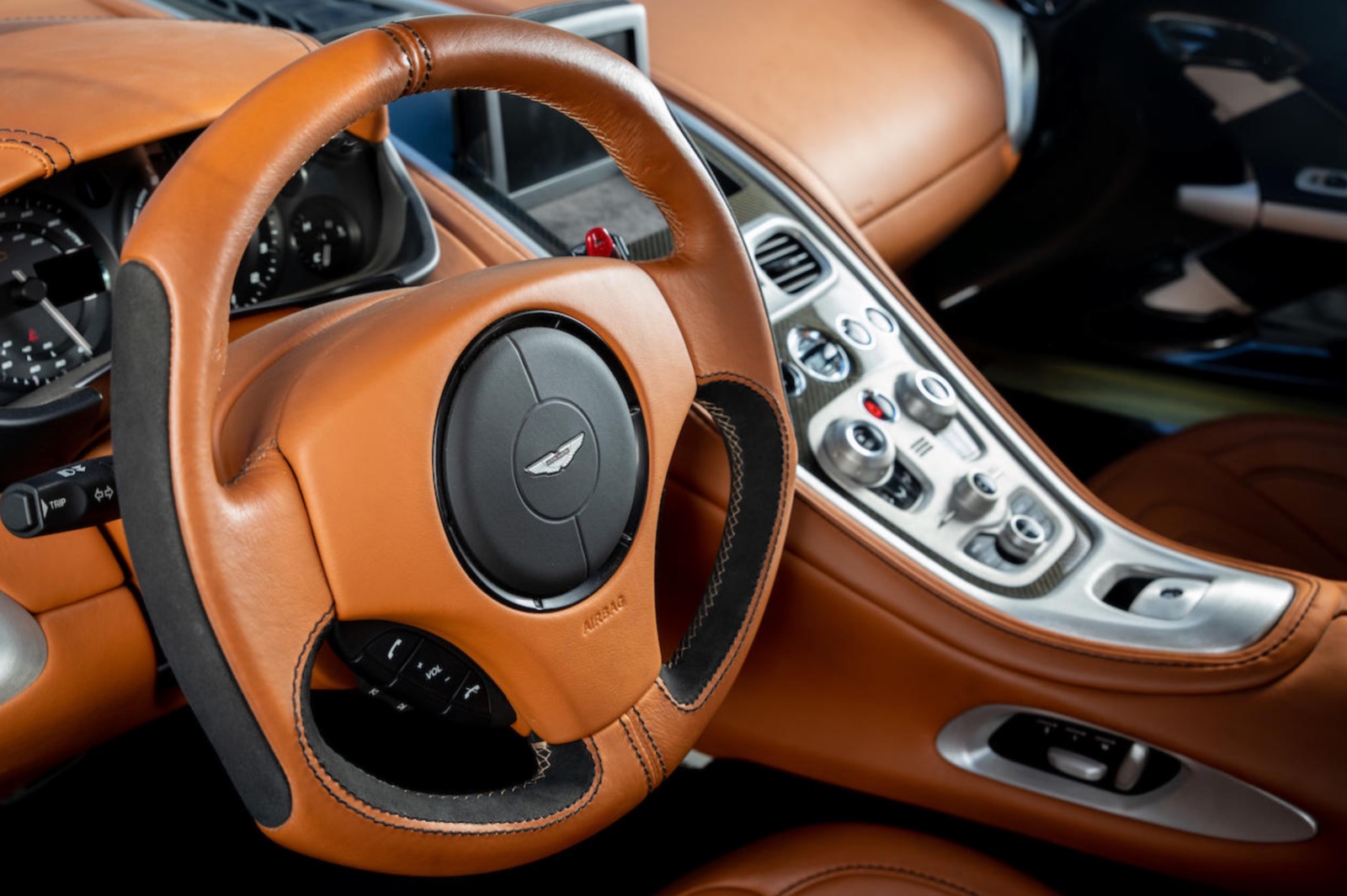 Exemplarul Aston Martin One-77 vândut de Bonhams prin divizia sa Motoring Private Sales este cu atât mai atrăgător cu cât este unul din puținele exemplare cu volan pe partea stângă și a parcus doar 300 km de la livrare.