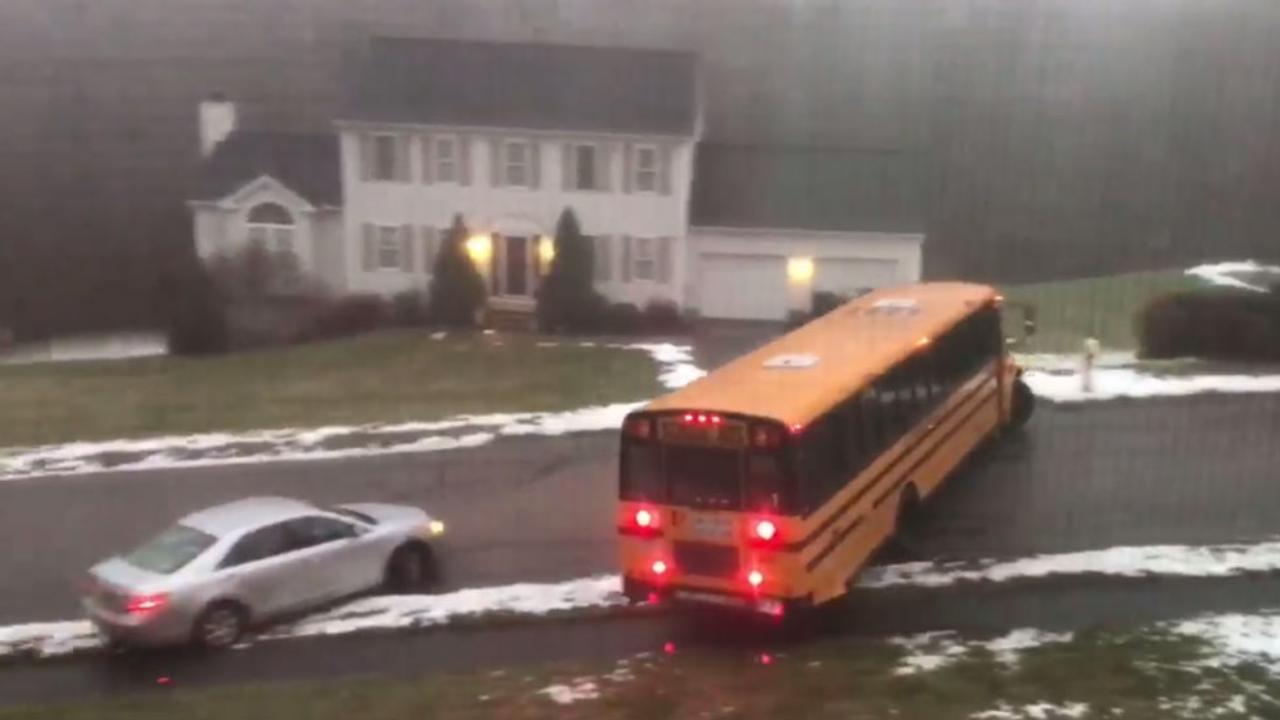 Incidentul a avut loc în Sutton, Massachussettes. După accidentul provocat de carosabilul plin de polei, toate autobuzele au fost retrase de pe traseu până când drumurile au fost curățate.