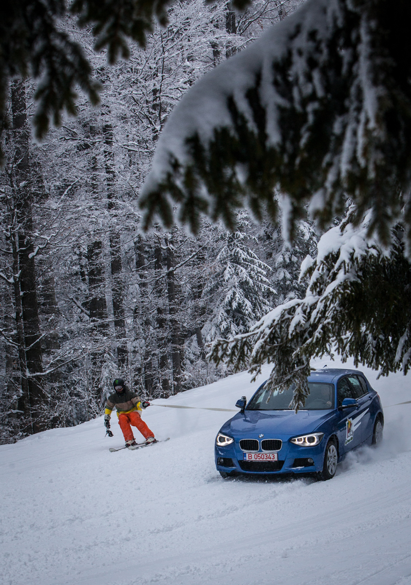 O întrecere inedită i-a adus faţă în faţă pe Claudiu David, pilot cu experienţă în Campionatul Mondial de Raliuri şi singurul instructor român BMW Driving Experince, şi George Vintilă, în calitate de schior profesionist. Noul BMW Seria 1 120d xDrive, echipat cu roţi speciale de zăpadă, a fost pregătit pentru a-l susţine pe Claudiu David.