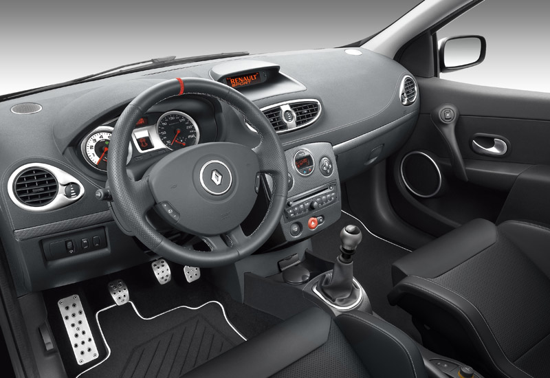 Echparea standard este foarte bogată, iar clienții pot opta, fără cost suplimentar, fie pentru opțiunea RS Monitor (sistemul Renault Sport de telemetrie la bord), fie pentru sistemul de navigație Carminat TomTom Live. Nu în cele din urmă, o plăcuță de identificare a ediției speciale “Ange & Démon” tronează pe stâlpul B al caroseriei, pentru a marca încă o dată exclusivitatea ediției produse în doar 666 de exemplare.