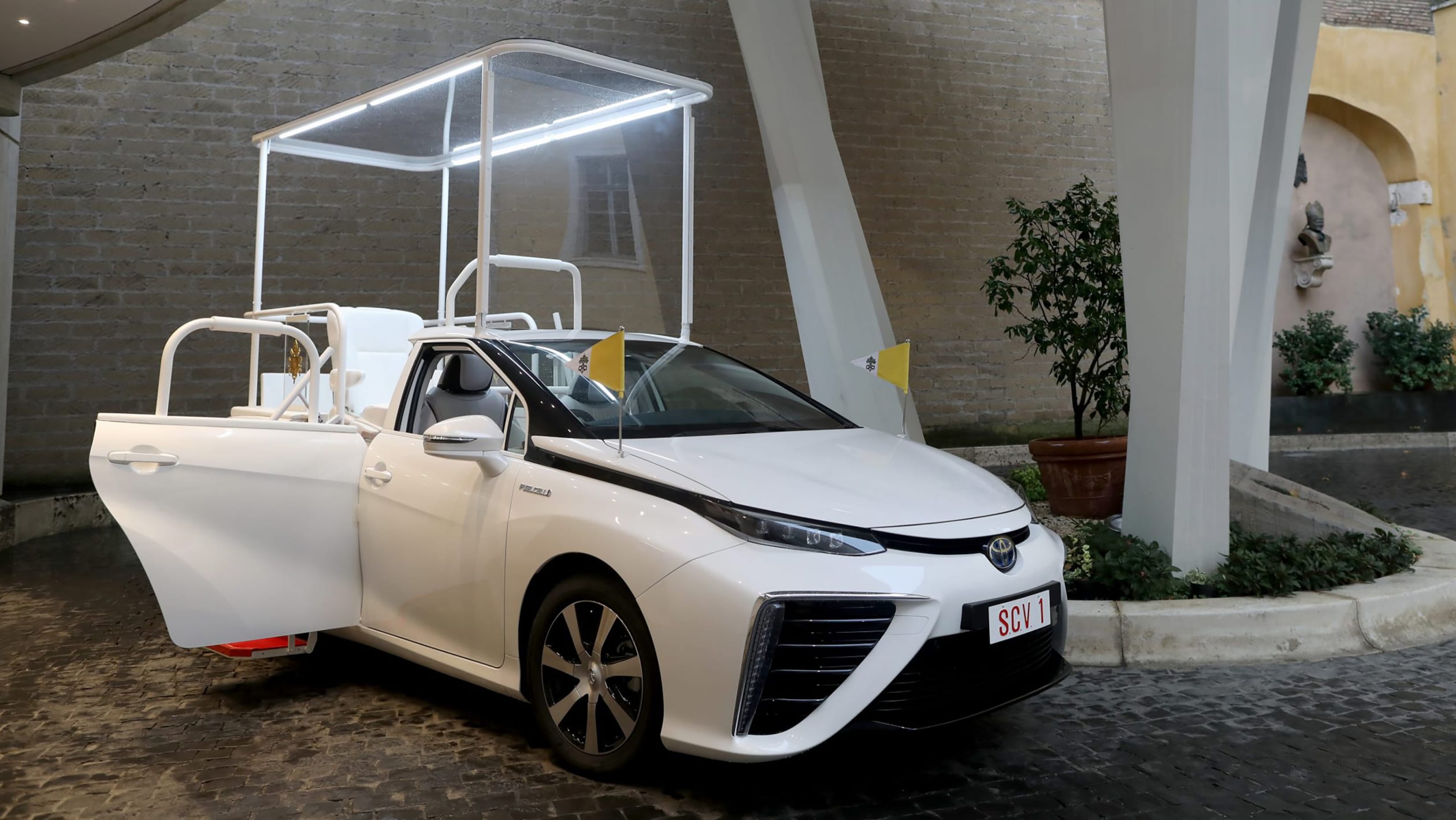 Papa Francis a primit un nou automobil dedicat vizitelor sale: o Toyota Mirai alimentată cu hidrogen și transformată în papamobil.