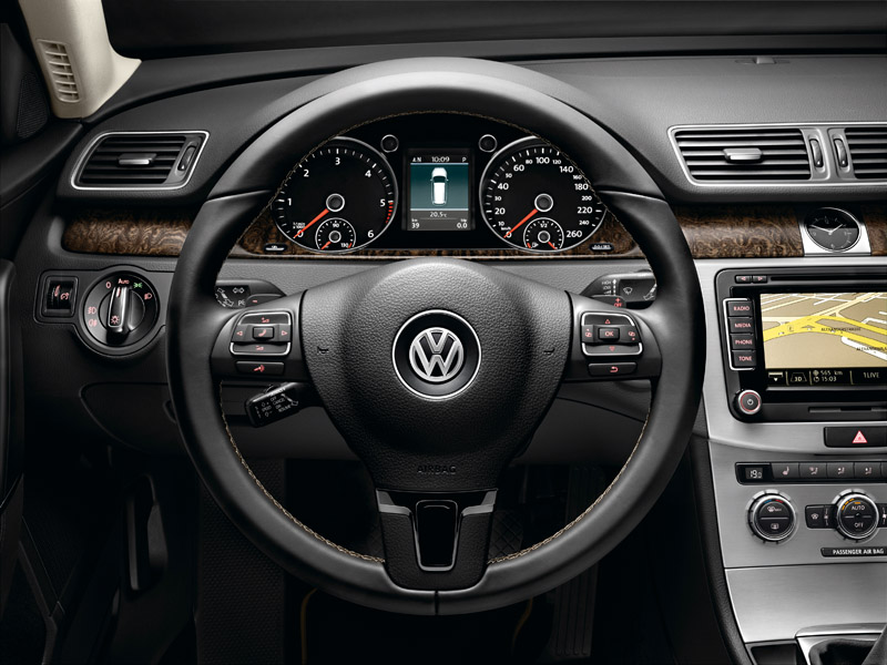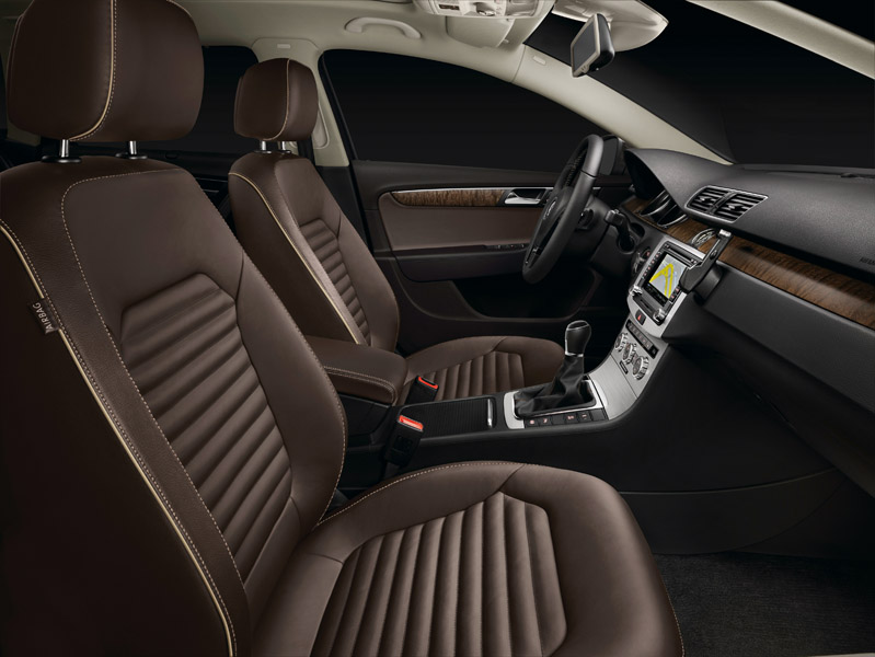 Interiorul prezinta un mixt interesant de suprafete, cu piele Nappa pe scaune complimentata de insertii din lemn si aluminiu. Contrastul este realizat de combinatia piele maro, cusatura alba. Atmosfera generala este una destul de interesanta, aproape de efectul premium anuntat de oficiali in comunicatul de presa. Aici conteaza mult si atentia acordata imbinarilor, un obicei vechi pentru Volkswagen. Pentru moment nu au fost anuntate decat preturile pentru Germania (de la 32.450 euro pentru sedan, respectiv 33.625 euro pentru Variant).