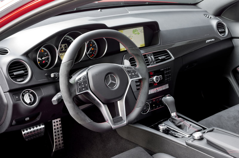 Două scaune sport AMG asigură un suport lateral optim, foarte important pentru momentele în care vehiculul evadează pe pistă. Materialul textil folosit la interiorul noului model a fost conceput special pentru acesta. Lipsa banchetei subliniază caracterul sportiv, de înaltă performanță a lui C 63 AMG Black Series, ajutând totodată la reducerea greutății totale. Dacă este nevoie totuși și de locuri în spate, opțional poate fi montată o banchetă cu profilare sport a locurilor.