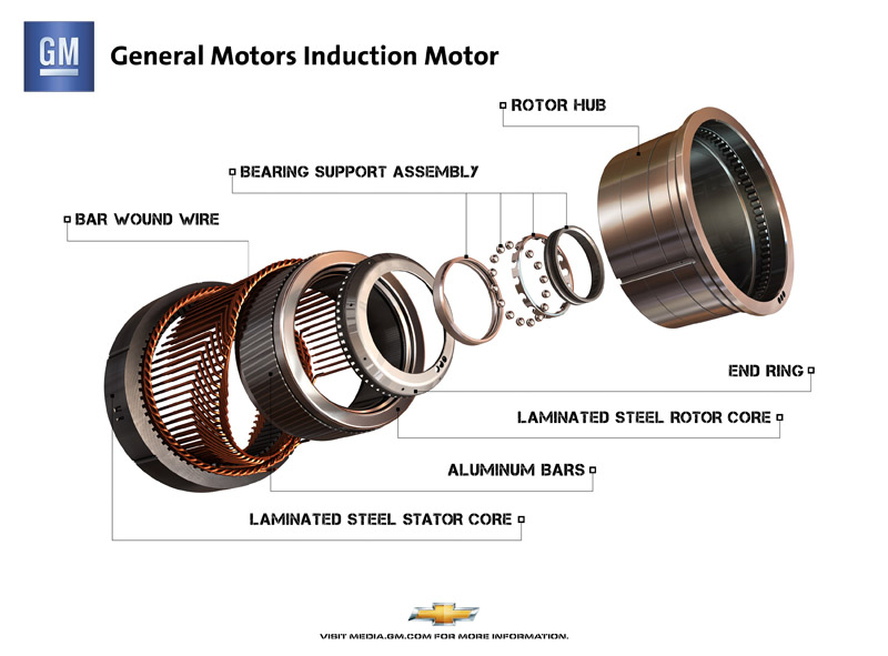 GM pune accentul pe dezvoltarea motoarelor cu inducţie şi cu magnet permanent, care au o gamă largă de utilizări. La o demonstraţie recentă de la fabrica din Wixom, reprezentanții media au avut oportunitatea de a construi manual părţi ale unui motor cu magnet permanent, având aceeași configuraţie cu cea a motorului de 85 kW (114 cp) cu magnet permanent care va fi montat pe autovehiculul electric Chevrolet Spark, ce urmează a fi lansat în 2013.