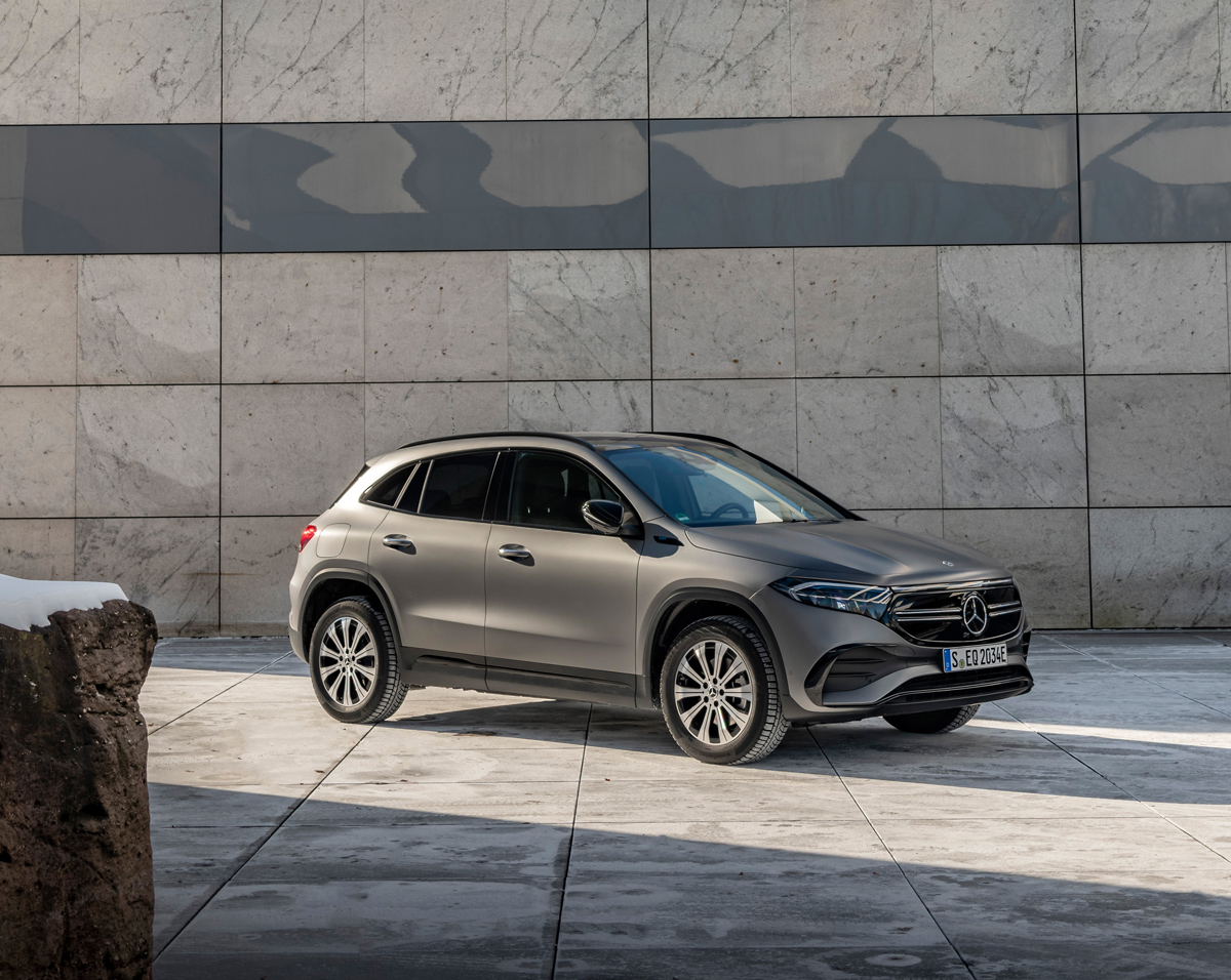 Modelul Mercedes-Benz EQA are deja peste 20.000 comenzi de la debutul comercial din luna februarie 2021. Noul model electric EQA preia designul general de la GLA, dar are o serie de elemente care o scot în evidență: grila închisă din partea frontală, banda LED ce leagă cele două stopuri din spate și jantele aerodinamice specifice. La interior, planșa de bord a primit indicatoare digitale specifice modelelor electrice, iar inserțiile sunt în culorile rose gold și albastru. Sistemul de climatizare folosește o pompă de căldură care utilizarea căldura reziduală de la trenul de rulare electric.