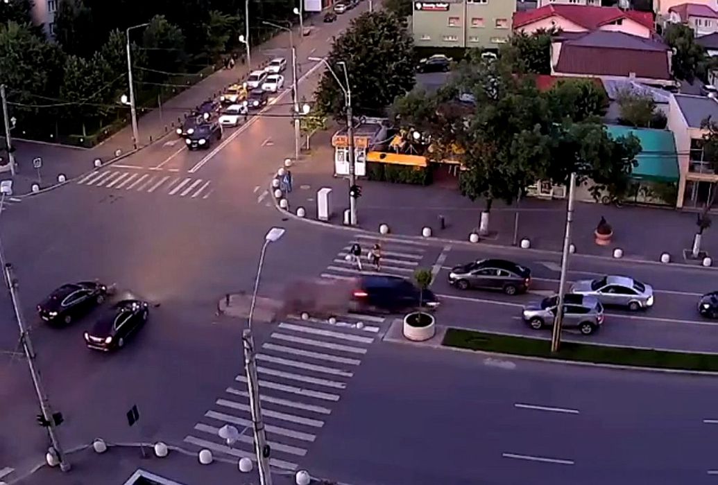 Camerele de supraveghere din București au surprins zilele trecute un accident în care au fost implicate șase automobile. Un șofer imprudent a forțat trecerea printr-o intersecție din sectorul 4, București, a fost aproape să lovească doi pietoni ce traversau regulamentar și a ajuns pe contrasens unde a lovit alte patru automobile.