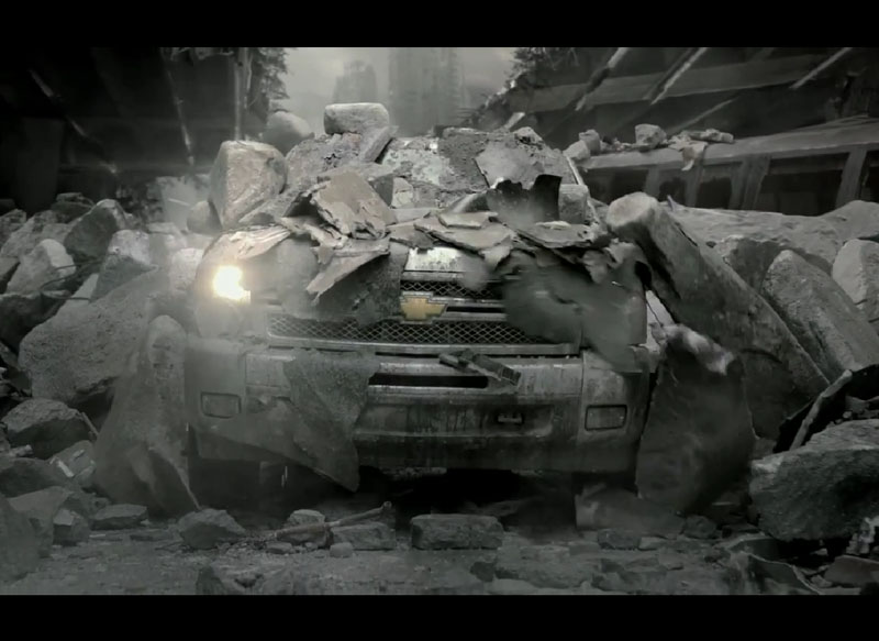 In reclama, Chevrolet sublinieaza faptul ca pick-up lor poate rezista Apocalipsei, in timp ce posesorii de Ford nu au nici o sansa in eventualitatea unui fenomen extrem. Reclama are totusi o abordare oarecum amuzanta, in ciuda temei nu foarte optimiste.