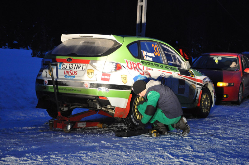 Sâmbătă a fost zi cu program de voie, ocazie cu care am bântuit puțin prin Covasna. Seara am dat târcoale “parcului închis” în care erau aliniate mașinuțele de concurs și deja mirosea a cursă. Mașinile NRA erau pregătite, celor două Subaru pilotate de Marco și Simone adăugându-li-se și o Dacia Logan pilotată de Florinel Tincescu. Goarna a sunat iarăși cu noaptea în cap a doua zi. Haine groase, dejun copios, aparate foto și multă voie bună pentru ceea ce urma.