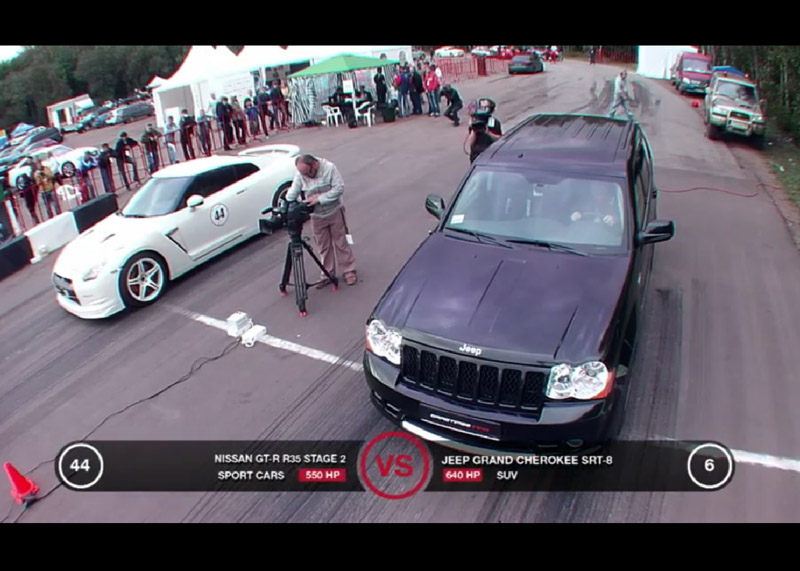 Nissan GT-R Stage 2 produce 550 CP in timp ce Jeep Grand Cherokee SRT8, cu ajutorul unui compresor, aduce in lupta 640 CP. Cei 90 CP in plus nu sunt chiar o valoare de negijat, ramane doar de vazut daca vor reusi sa compenseze diferenta considerabila de gabarit dintre cele doua masini.