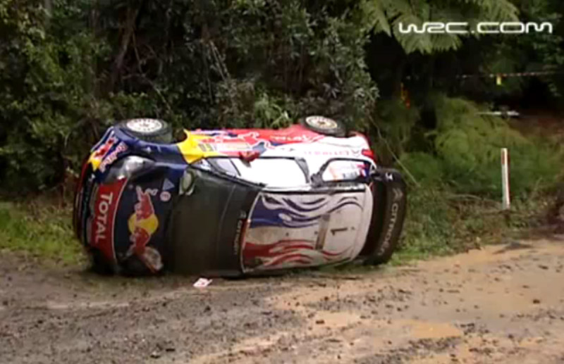 Din păcate, pe parcursul celei de-a patra probe speciale a zilei de vineri, Loeb a făcut o eroare de pilotaj (după cum avea să declare și el) care s-a finalizat cu abandonul echipajului francez Sebastien Loeb/Daniel Elena. După ce a intrat prea tare într-un viraj de dreapta, Seb a pierdut controlul automobilului Citroen DS3 WRC și s-a răsturnat de nu mai puțin de cinci ori.
