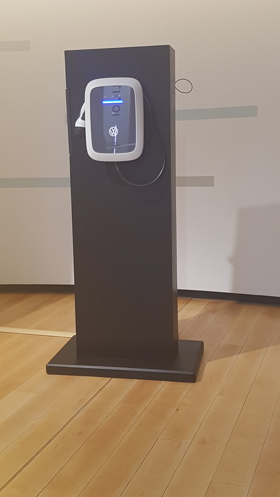 Avem o autonomie rezonabilă – cum procedăm cu încărcarea?  Volkswagen va oferi un wall box care poate fi montat în sistemul electric convențional capabil să ofere o rată de încărcare de 11 kW (AC), suficient pentru încărcarea completă pe parcursul unei nopți. Acest wall box va costa aproximativ 300 de euro, iar clienții care vor mai mult vor găsi în ofertă și un dispozitiv care poate să ofere și o încărcare la 22 kW (DC).