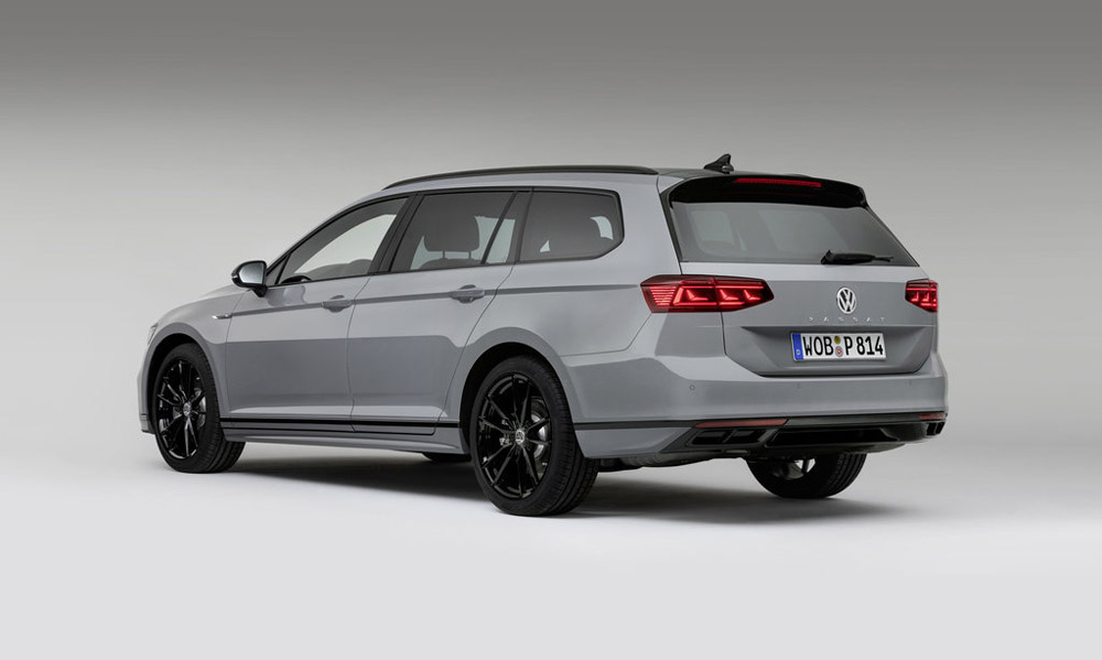 VW Passat Variant 4MOTION R-Line Edition poate fi configurat cu vopseaua specială “Moonstone Gray”. Spoilerul, palfonul și capacele oglinzilor laterale sunt vopsite în negru pentru a oferi contrast. Stopurile dispun de tehnologie LED și alături de roțile din aliaj de 19 inchi au fost, de asemenea, integrate în această schemă de culori.