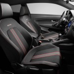 Elementele de personalizare continuă și la interior, unde GTS vine cu detalii negre, cusături roșii și legandara minge de golf montată în vârful schimbătorului de viteze. Dacă te uiți după scaunele cu tapițerie cadrilată, însă, vei fi dezamăgit: Scirocco GTS vine doar cu o dungă lată pe toată lungimea scaunelor, încadrată de două dungi roșii mai subțiri.
