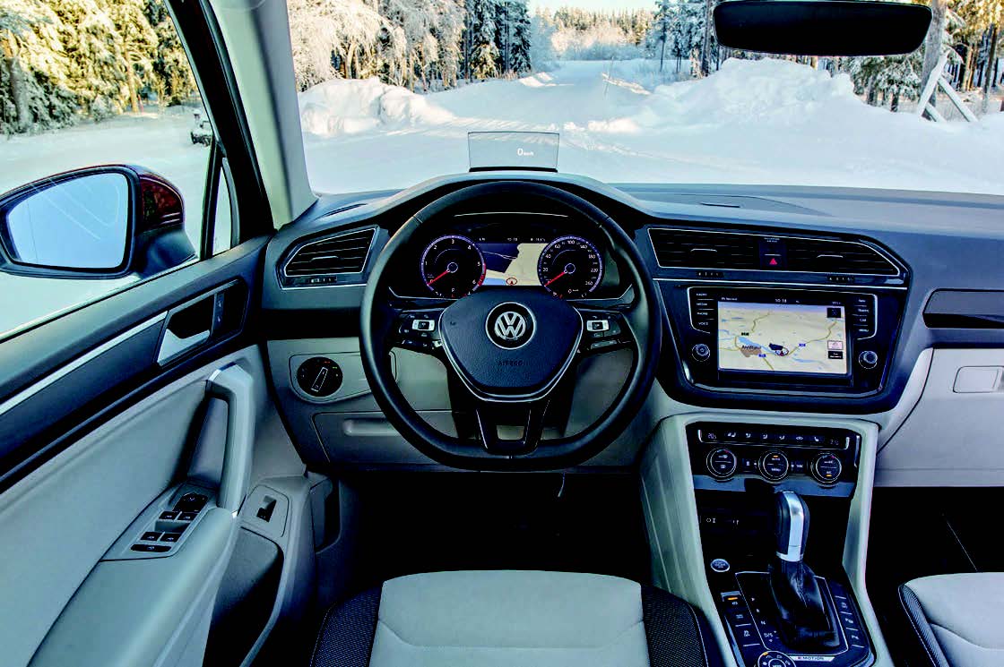 Într-un loc distinct aproape de șofer pe tunelul median se află comutatorul rotativ pentru cele patru moduri de rulare, iar în centrul lui, butonul Mode pentru accesarea profilelor de rulare în fiecare dintre moduri. Scaunele au fost complet redesenate, opțional fiind oferite scaunele ergoActive cu reglaje electrice pe 14 direcții inclusiv pentru lungimea șezutului și unghiul acestuia, reglaj electric pe 4 direcții pentru suportul lombar, funcții de încălzire și masaj. De asemenea, Tiguan oferă una din cele mai mari trape panoramice amovibile în acest segment (870 x 1.364 mm).