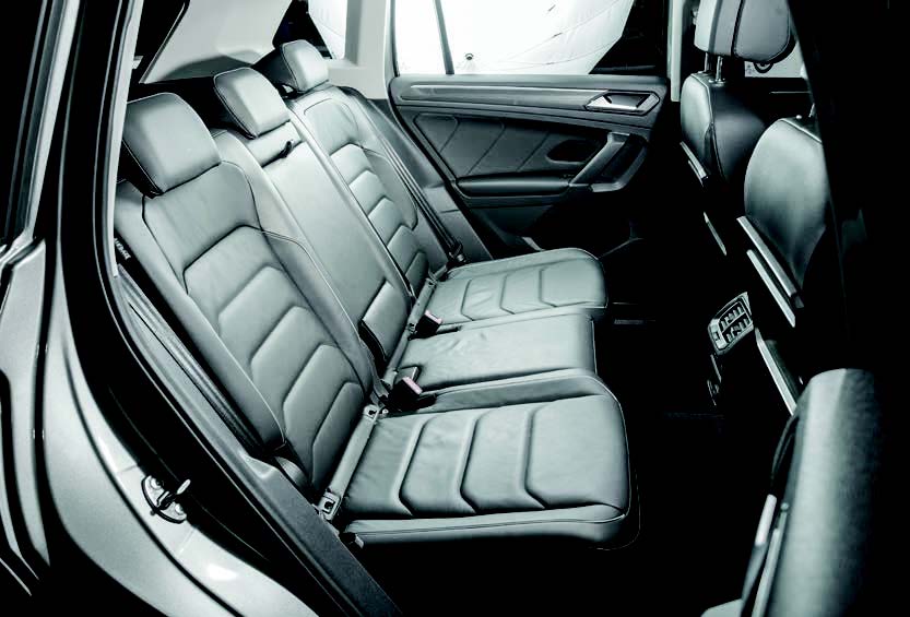 Și lungimea utilă a interiorului este mai mare acum cu 26 mm. În acest sens, Tiguan marchează un pas uriaș în ceea ce privește spațiul interior și volumul portbagajului. Și nu doar spațiul interior generos impresionează ci și modularitatea interioară. Tiguan concurează cu succes multe minivanuri la care modularitatea este principalul atu. În primul rând, cei trei pasageri din spate au la dispoziție un spațiu mărit pentru genunchi cu 29 mm.