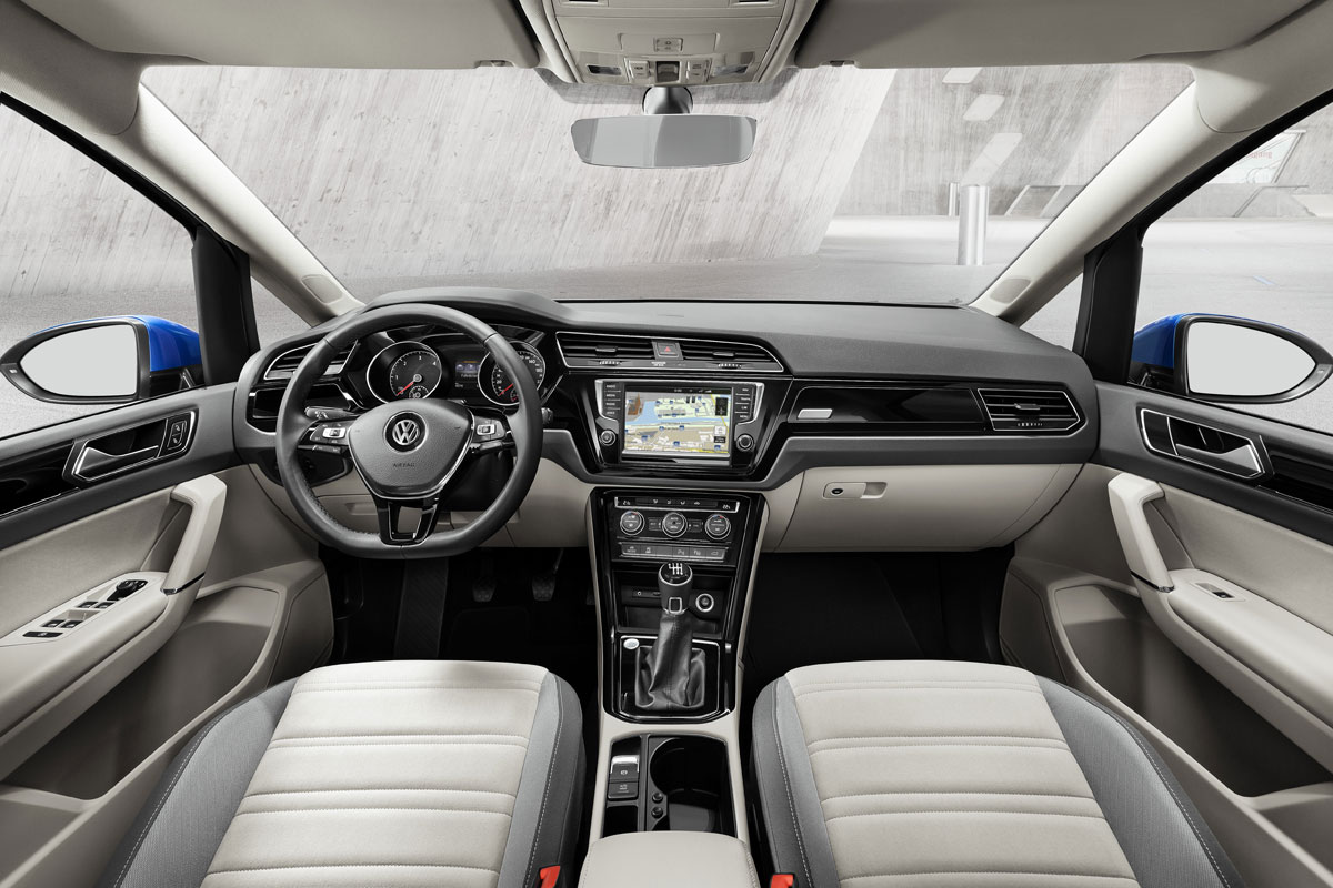 Surprinzător, interiorul este complet nou. Numeroasele elemente preluate de la fratele mai mic Golf Plus și de la Golf sunt reașezate pentru a crea impresia unui layout inedit, cu accente sportive conferite de consola centrală cu iz de BMW, orientată spre șofer. Sistemul multimedia cu touchscreen capacitiv de 8 inci este, în premieră, compatibil cu noile standarde Google Android Auto și Apple Car Play.