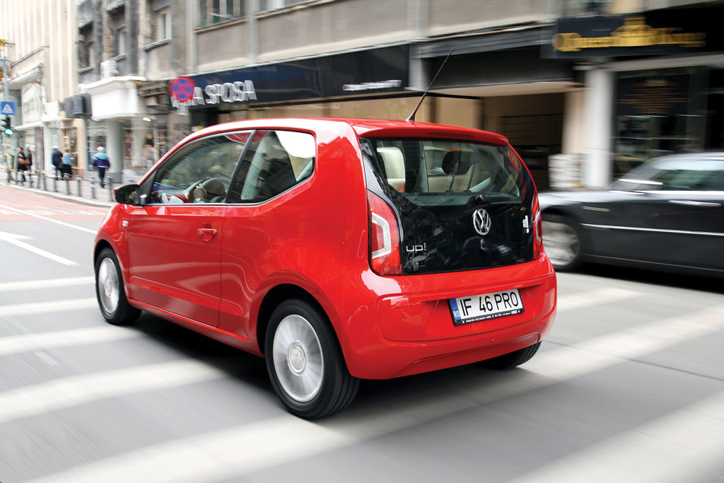 Această maturitate, să zicem surprinzătoare pentru segment, se remarcă și la nivelul suspensiei și al comportamentului dinamic. Foarte stabil pe denivelări și la viteze mari, acest up! îți lasă impresia că ar putea trece oricând drept model de clasă mică. Mai puțin reușit este răspunsul motorului până în 3.000 rpm, în special în comparație cu modul în care reacționează un Aygo într-o situație similară. Se pare că inginerii VW au preferat să optimizeze acest nou propulsor în direcția consumului și mai puțin la răspunsul la accelerație. Raportat la costurile de întreținere asta nu este deloc rău, iar consumul urban de 5.5-6 l/100 km stă mărturie acestui fapt.
