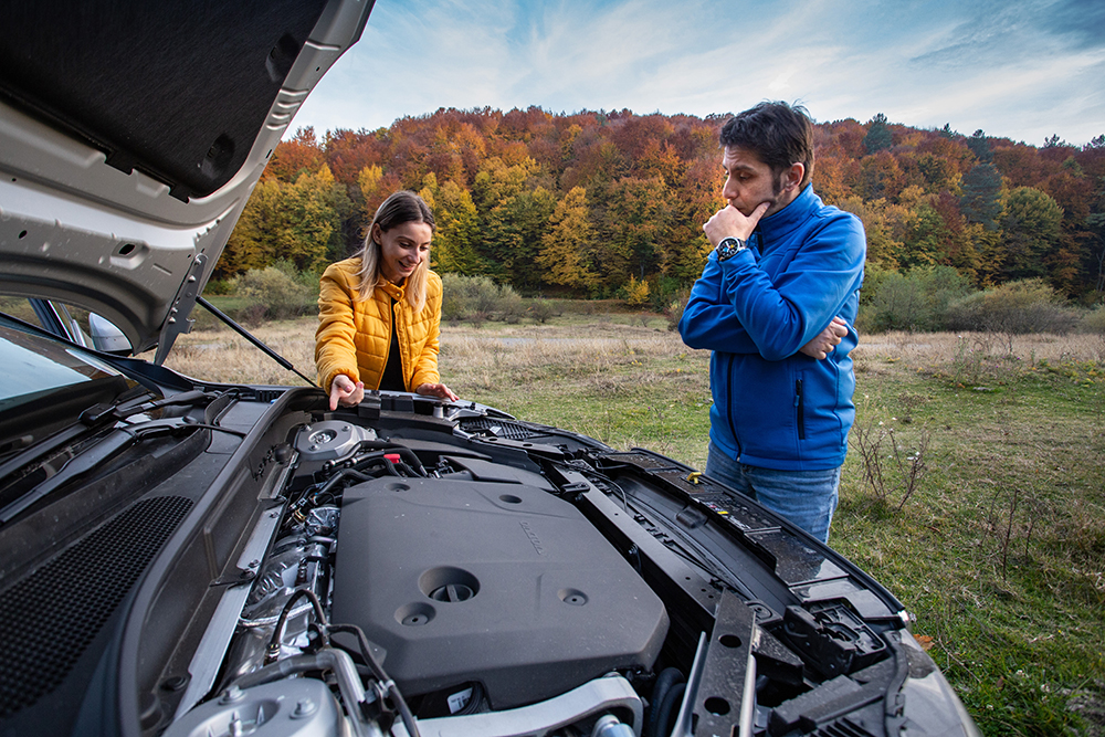 Și mai e ceva, sistemul stop/start excepțional de rafinat, fără vibrații când pornește motorul la semafor, induce o senzație aproape ireală, mai ales pentru un diesel. Meritul aparține sistemului mild hybrid la 48 V, al cărui motoraș electric de 14 CP pune în mișcare prompt și fără smucituri vilbrochenul. Iar când eliberezi accelerația, se transformă în generator și încarcă o baterie de 0,44 kWh aflată în portbagaj, lângă roata de rezervă. Apoi, redevine motor și, folosind curentul stocat în baterie, ușurează munca dieselului. Suedezii spun că scade consumul cu 3–6%, în funcție de rută. Eu pot să confirm că autonomia indicată cu rezervorul plin sare de 1000 km și că, după traseul din Micul Paris, computerul de bord afișa o medie de 8,0 l/100 km. Și mai pot confirma că Teodora a fost mai răbdătoare decât oricând, pusă la adăpost de zgomote și înconjurată de spătarul profilat al banchetei.