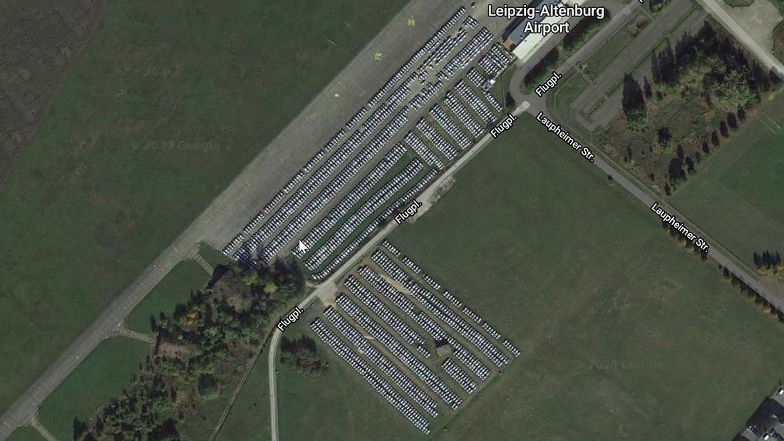 În Altenburg, la 30 km de uzina din Zwickau, există un vechi aeroport unde VW poate depozita între 5.000 și 8.000 surprinse în fotografie de firma germană de închirieri mașini electrice nextmove.de.