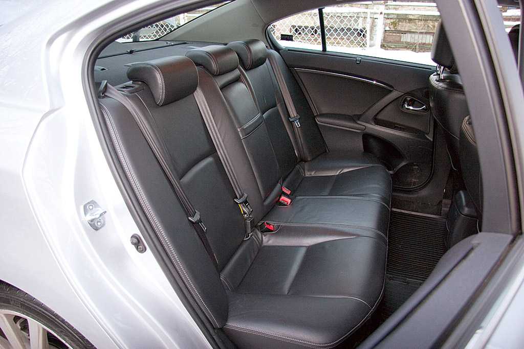 Ce nu este la fel de mulţumitor se datorează stâlpilor parbrizului, ce oferă o vizibilitate mediocră în viraje. Planşa de bord este lipsită de complicaţii şi se remarcă prin comenzile şi butoanele bine amplasate. Materialele sunt de calitate, la fel şi îmbinările, dar fără să recomande Avensis drept etalonul clasei la acest capitol. Locurile din spate sunt şi ele spaţioase şi confortabile şi se bucură de un acces bun datorat unghiului larg de deschidere a portierelor. Portbagajul este accesibil uşor şi oferă un volum mai mult decât decent, de 509 litri, extensibil la nevoie prin rabatarea banchetelor.
