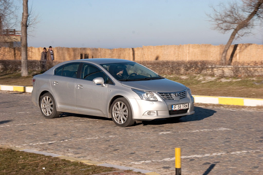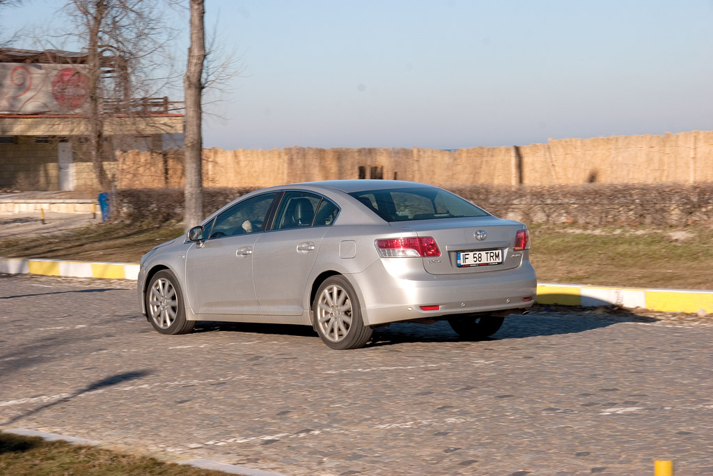 Direcţia este precisă şi confortabilă, am apreciat-o mai ales la manevrele prin locurile înguste, dar feelingul oferit o ţine încă departe de ceea ce şi-ar putea dori un amator de senzaţii sportive. Avensis nu cochetează cu latura sportivă nici la capitolul suspensie. Confortul acesteia este în cea mai mare parte bun, cu excepţia prestaţiei mediocre în a filtra şocurilor scurte provocate de denivelările mici, lucru datorat în mare parte şi anvelopelor cu talon mic cu care era încălţată maşina de test, ceea ce mă face să nu recomand acest accesoriu pentru străzile de la noi. Şi totuşi, Avensis se simte excelent în viraje şi mai mult de atât, pe autostradă.