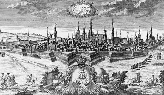 În regiunea cetății apar trei orașe germane Altsstadt, Löbenicht, Kneiphof, fiecare cu o administrație proprie. După distrugerea cetății de către pruți, în 1263, comunitatea germană din jurul cetății a fost refăcută. În anul 1286 comunitatea aparținea de Hansa, cu drepturi depline de oraș al Hansei – 1340.